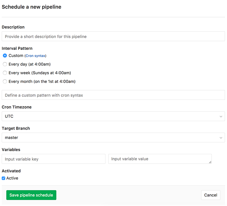 Note: When the owner of the schedule doesn't have the ability to create pipelines anymore, due to e.g., being blocked or removed from the project, or lacking the permission to run on protected branches or tags. When this happened, the schedule is deactivated. Another user can take ownership and activate it, so the schedule can be run again.
